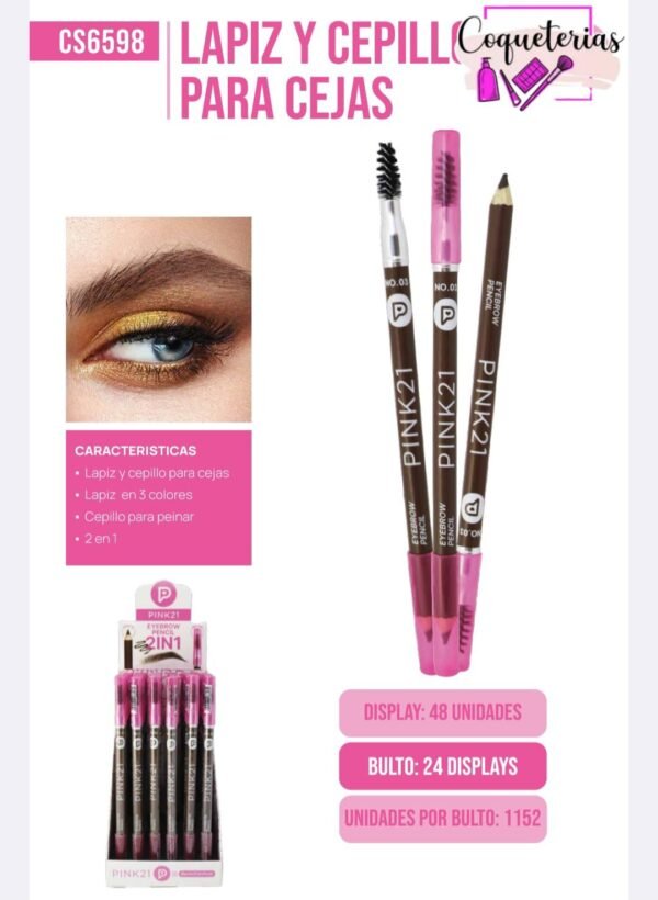 LAPIZ DE CEJAS CON CEPILLO PINK21 X 48 UNIDADES